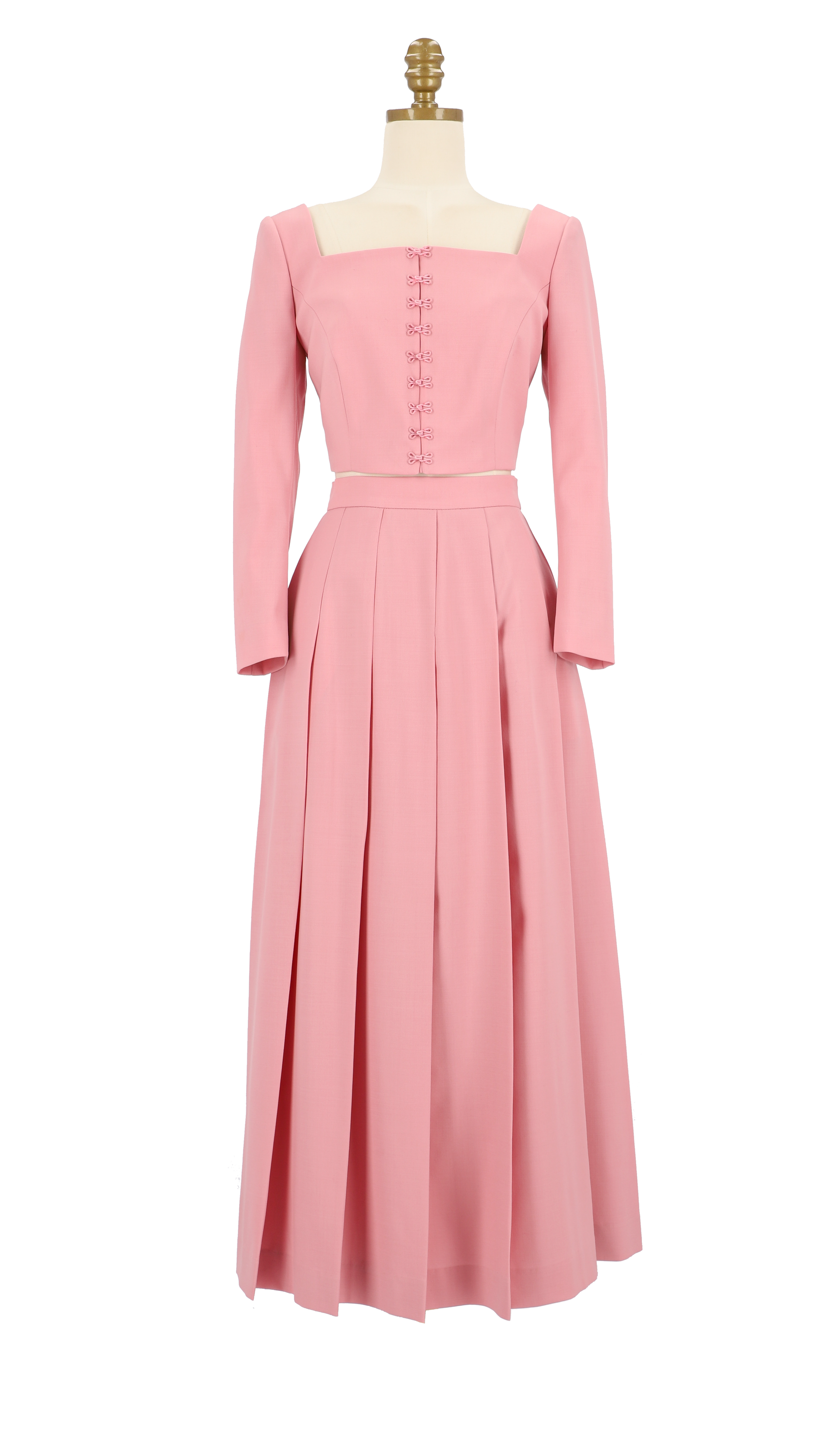 페미닌 하고 러블리한 무드를 연출 할 수 있습니다.Elisa Top & Wide Pleat Skirt Set는 광택없이 매트하고 부드러운 소재로 깔끔한 핏 감이 오래도록 유지되며 너무 두껍지도 얇지도 않은 적당한 두께감으로 오래도록 즐겨 입을 수 있는 셋업입니다.